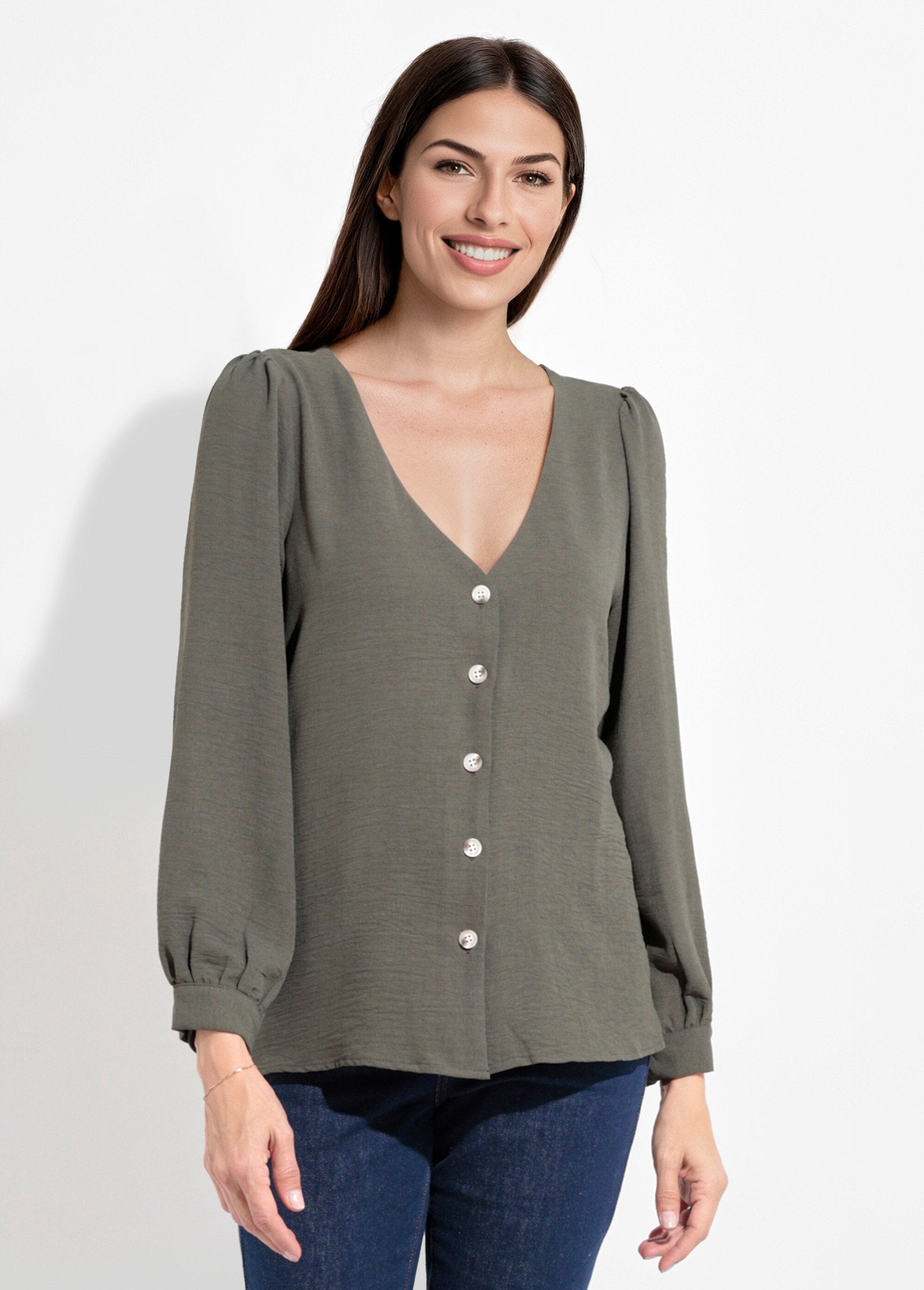Buttoned,_embossed_tunic_with_V-neck_Khaki_FA1_slim Buttoned,_embossed_tunic_with_V-neck_Khaki_DO1_slim
