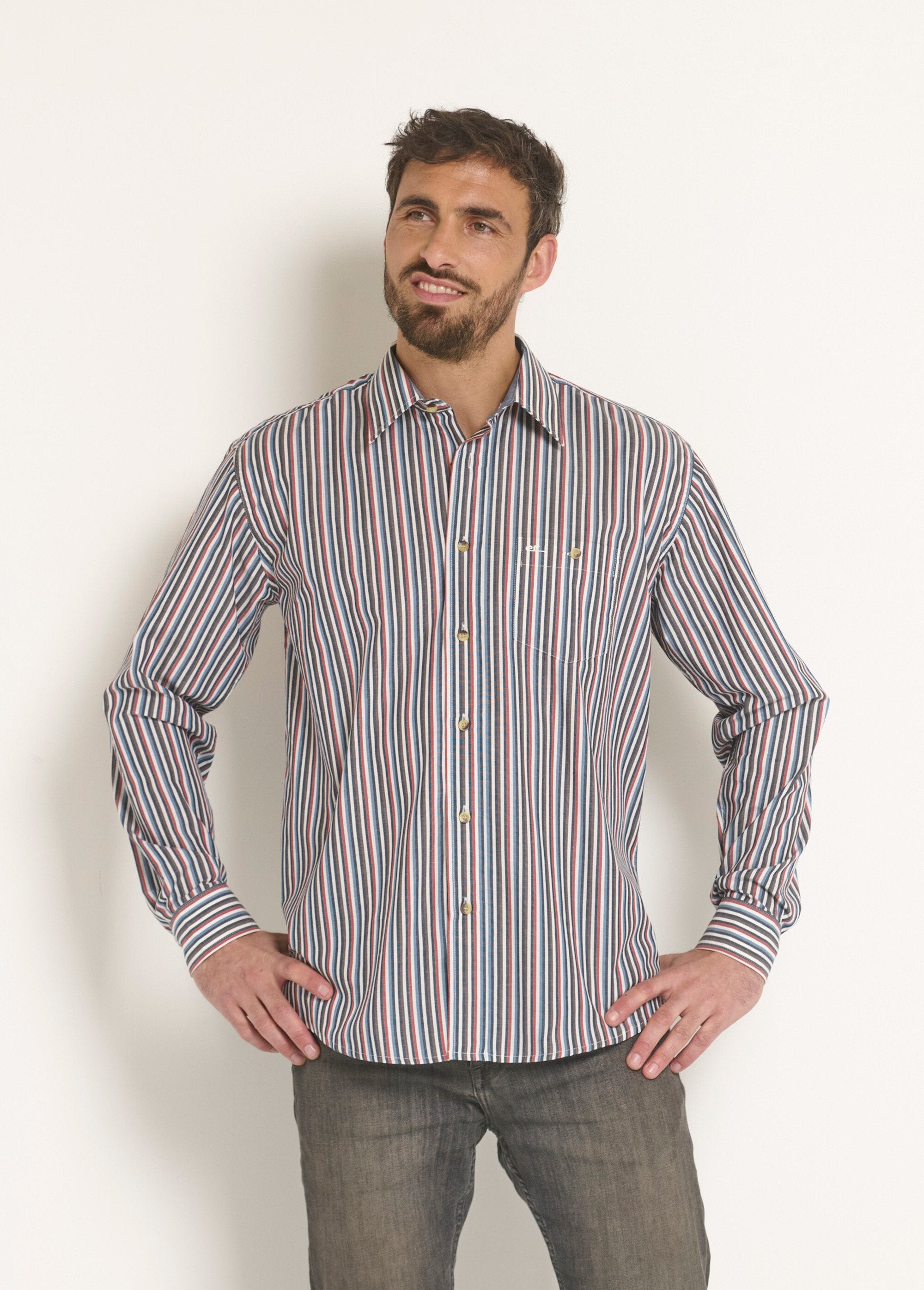 This striped shirt, crafted from polycotton for quick and easy care, features elegant long sleeves, refined horn-effect buttons and a practical chest pocket. Versatile and timeless, it strikes the perfect balance between elegance and casualness, adapting to any occasion, whether it's a workday, a casual outing or a more formal moment. Its soft, wearable fabric offers optimal comfort throughout the day, while its classic, neat design adds a touch of understated sophistication to your wardrobe.