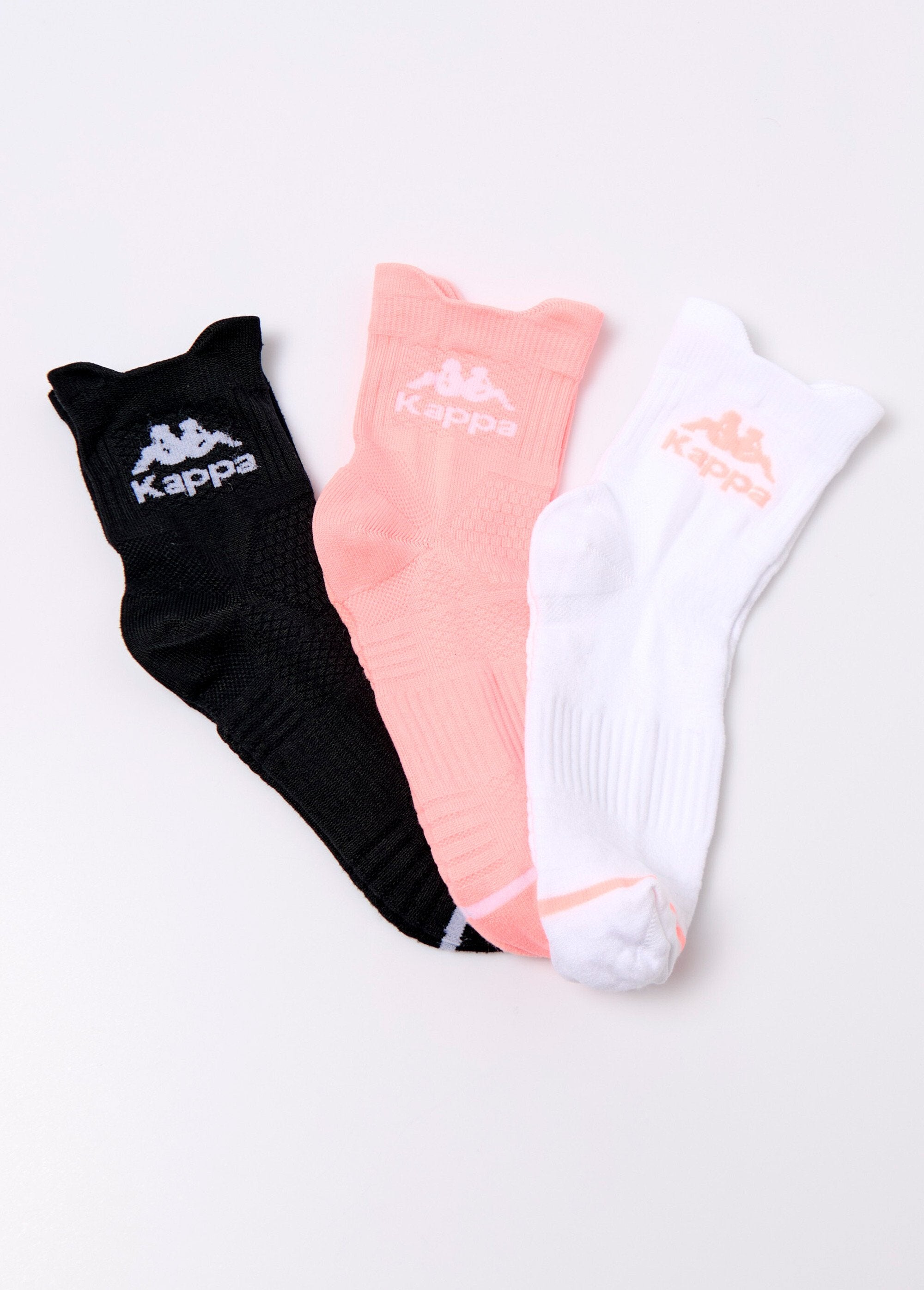 This pack of 3 Kappa® ankle socks features a subtle textured knit, adding comfort and originality to each pair. The socks are available in assorted light tones, perfect for adding a delicate and elegant touch to your outfits. Perfect for everyday wear, they combine practicality and style while providing a pleasant feeling of softness and support.